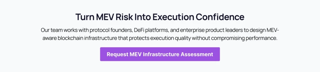 The question for protocol teams, treasury managers, and product leaders is not whether MEV exists. It is whether their platform runs on MEV aware blockchain infrastructure or operates without it.