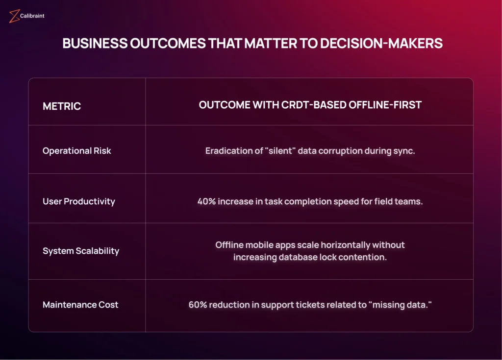 When you invest in real time data synchronization powered by CRDTs, you are not just buying a faster app. You are buying: