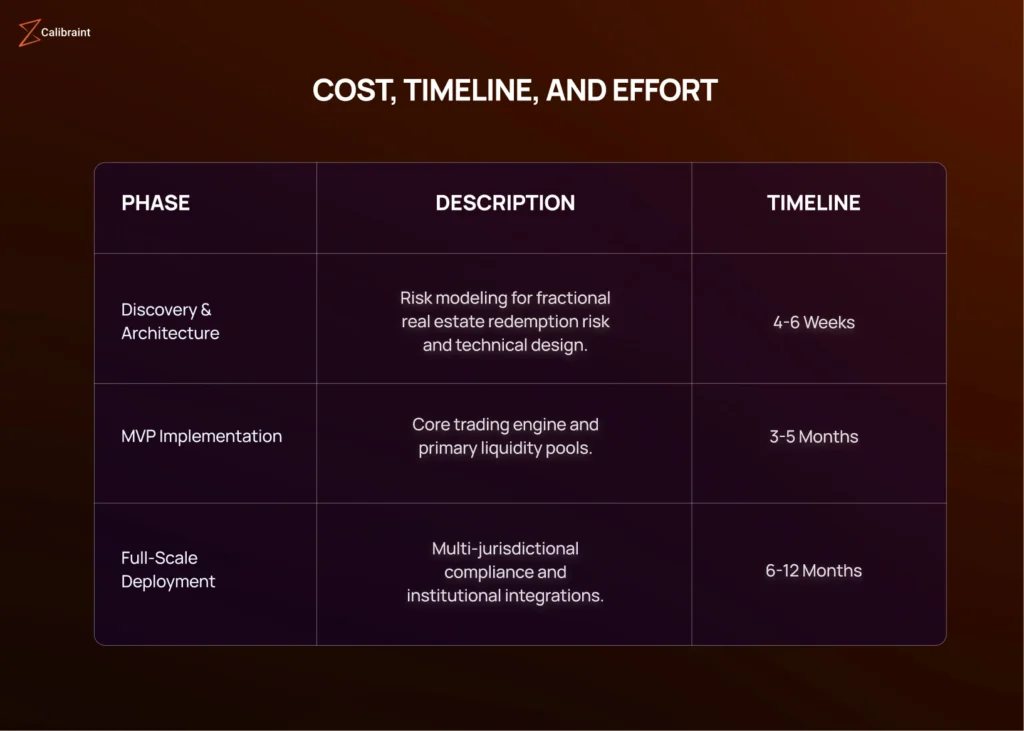 Calibraint operates where institutional finance meets production-grade engineering. We design and deploy enterprise liquidity infrastructure, not experimental platforms. Our proven expertise in RWA development enables your organization to operationalize REITs vs Fractional Real Estate Liquidity decisions with measurable confidence, regulatory alignment, and long-term scalability.