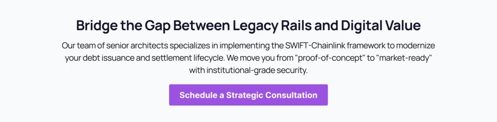 If you are evaluating how tokenized bonds, SWIFT blockchain integration, or Chainlink CCIP fit into your institutional roadmap, we can help you move from concept to execution with clarity and confidence.